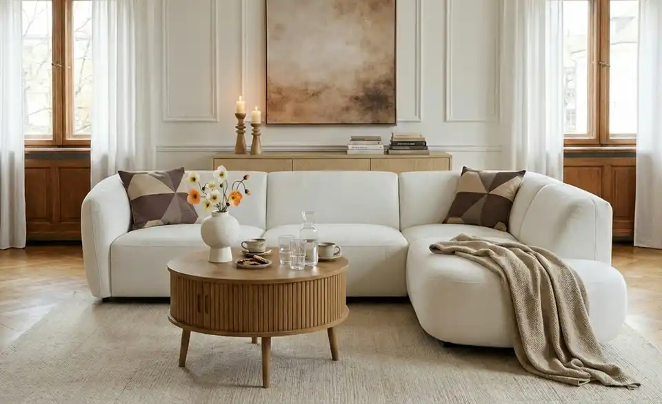 - Großer Stauraum hinter 2 Lamellen Schiebetüren