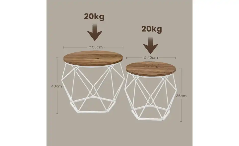 - Mehr zu Maßen1x 50x50x40 cm, 1x 40x40x36 cm