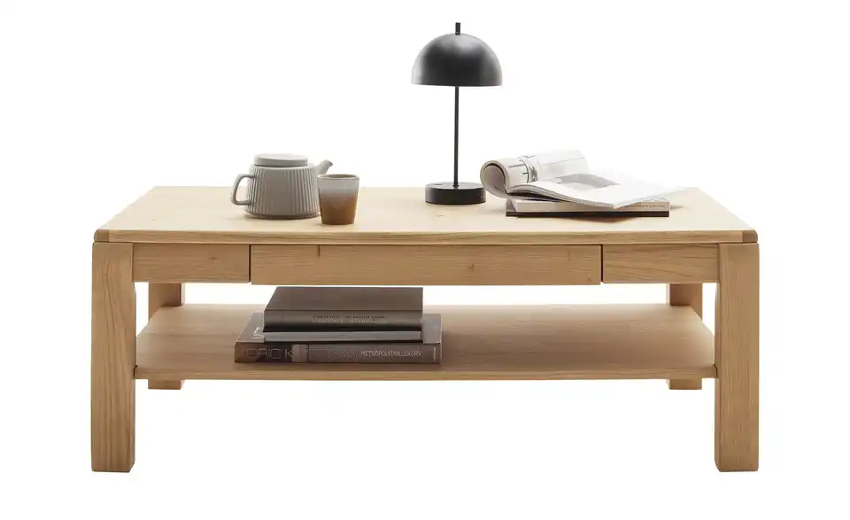 - Mehr zu MaterialTischplatte und Gestell aus Ast/Balkeneiche furniert in Kristalleiche geölt