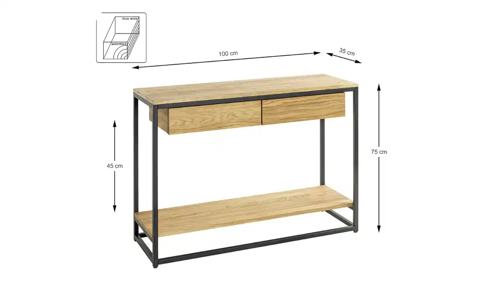 - Mehr zu MaterialTischplatte, Schubkästen, Ablage Massivholz geöltGestell Stahlrohr pulverbeschichtet