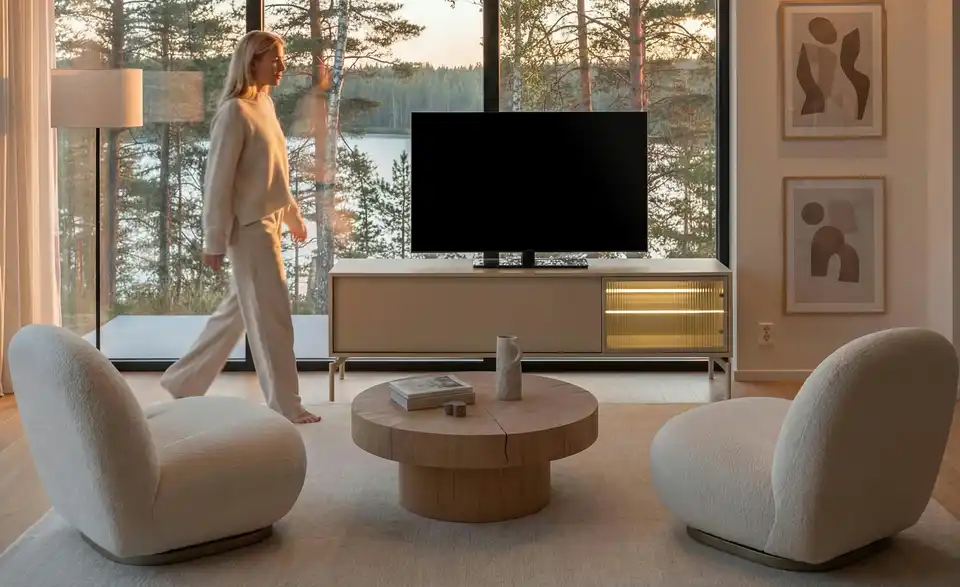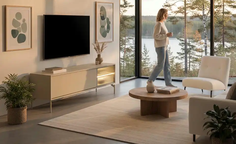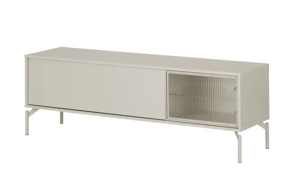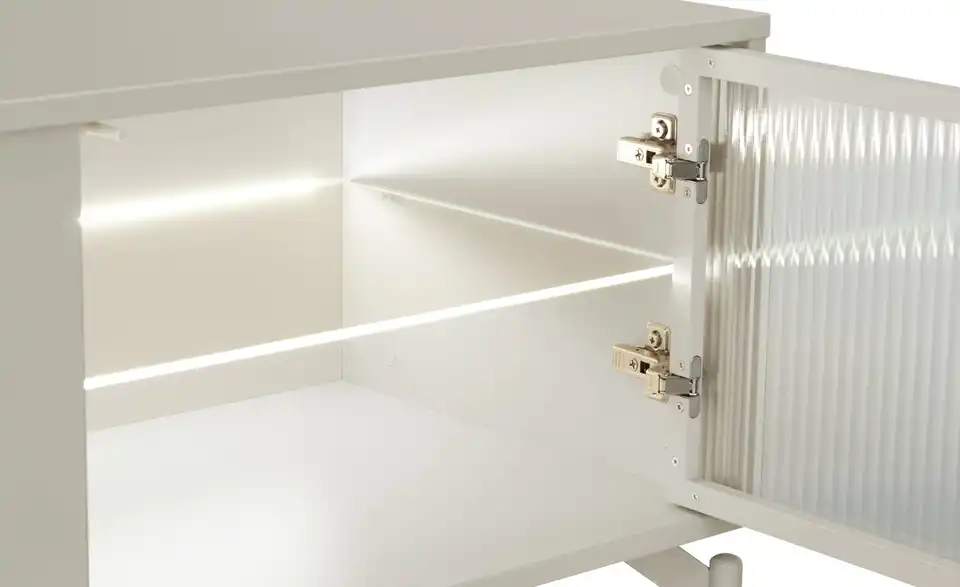 Dieses TV-Lowboard verbindet modernes Design mit zeitgemäßen Funktionen und Stauraum. Das grifflose, einfarbige Design passt in nahezu jedes Raumkonzept. Die blickdichte Klappe und die geriffelte Glastür lassen sich durch die Push-to-open-Funktion kinderleicht öffnen. Durch die Riffeloptik der Glastür schimmern die dahinter platzierten Dekoobjekte nur dezent durch. Die mitgelieferte Glaskantenbeleuchtung, die übrigens auch über eine Timer-Funktion verfügt, sorgt hier für ein echtes Wohlfühl-Ambiente. Außerdem praktisch: Sie können die Farbe des Lichts mit der Fernbedienung mühelos ändern.Lieferung & Versand