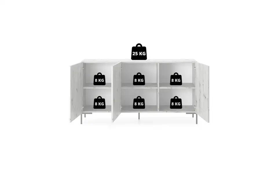 - max. Belastbarkeit je verstellbarem Einlegeboden bis ca.8 kg