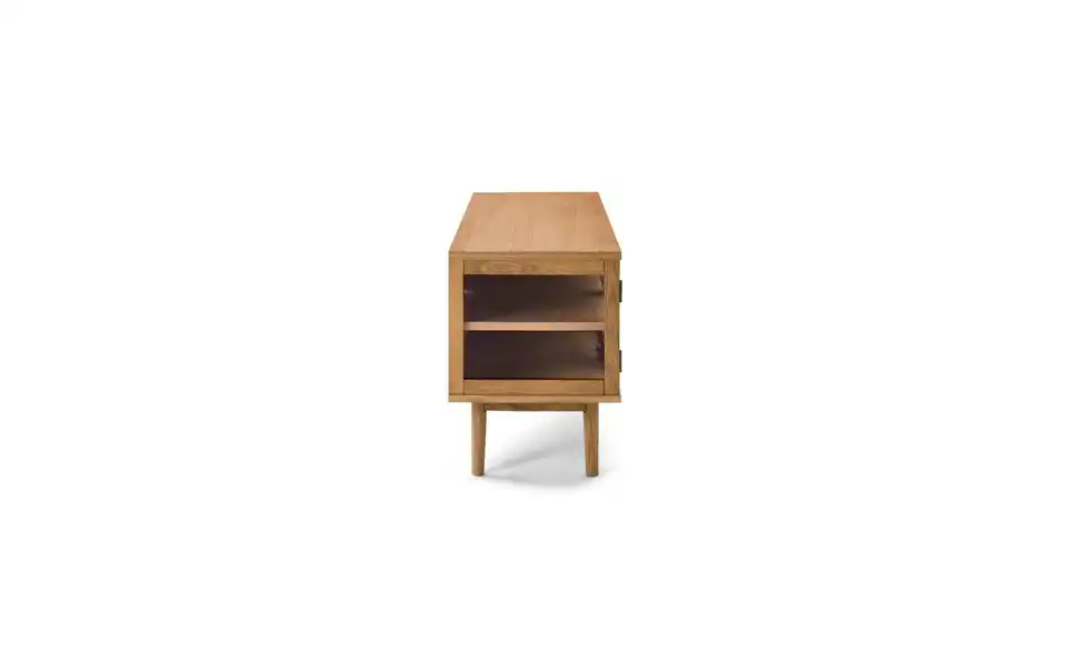 - Mehr zu MaterialRahmen und Beine aus massiver Eiche, Böden und Rückwand aus MDF-Eichenfurnier, Türen und Seiten aus gehärtetem Glas, Eiche Furnier, Lackiert