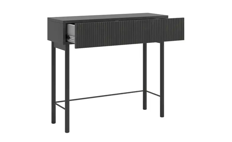 - Mehr zu Ausstattung / Funktionmit geriffelten Fronten und schwarzem Metallgestell