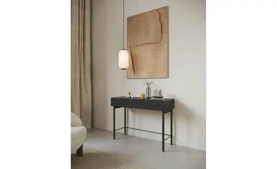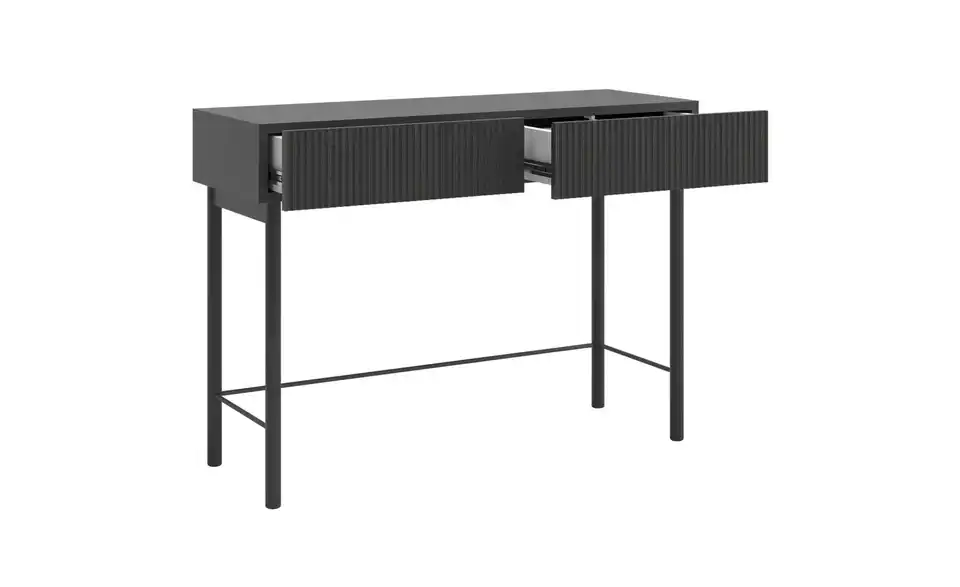 - Mehr zu Ausstattung / Funktionmit geriffelten Fronten und schwarzem Metallgestell