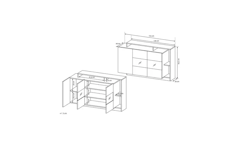 - Farbe / Dekor Korpus innenWeißEiche (Nachbildung)