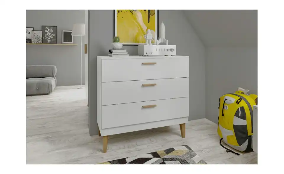 - Lieferumfang / mitgeliefertes ZubehörMontagesatz (Schrauben, Dübel), 3x Schubladenführung, 4x Holzbein, 3x Holzgriff
