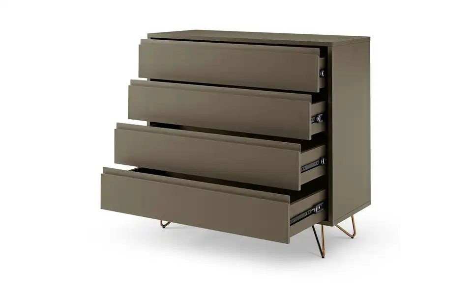 - Mehr zu Ausstattung / FunktionBeine aus Metall mit Messinglegierung, 4 Schubladen ausziehbar