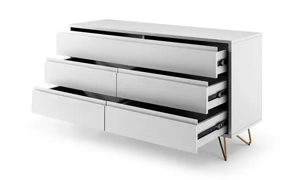 - Mehr zu Ausstattung / FunktionBeine aus Metall mit Messinglegierung, 6 Schubladen ausziehbar