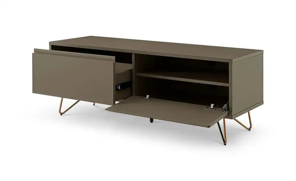 - Mehr zu Ausstattung / FunktionBeine aus Metall mit Messinglegierung, 1 herausnehmbares Regalbrett, Schublade ausziehbar, Frontblende mit Klappendämpfer