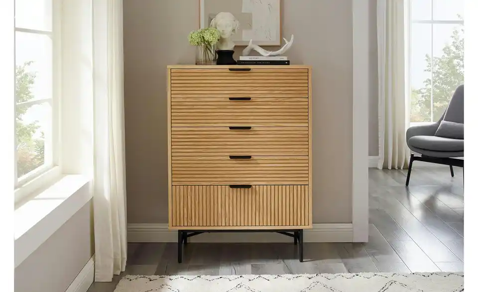 - Mehr zu MaßenSchubladeninnenmaße 4x ca. B70,2xT33,5xH10,8 cm, 1x B70,2xT33,5xH14,5 cm, Höhe der Füße: 20 cm