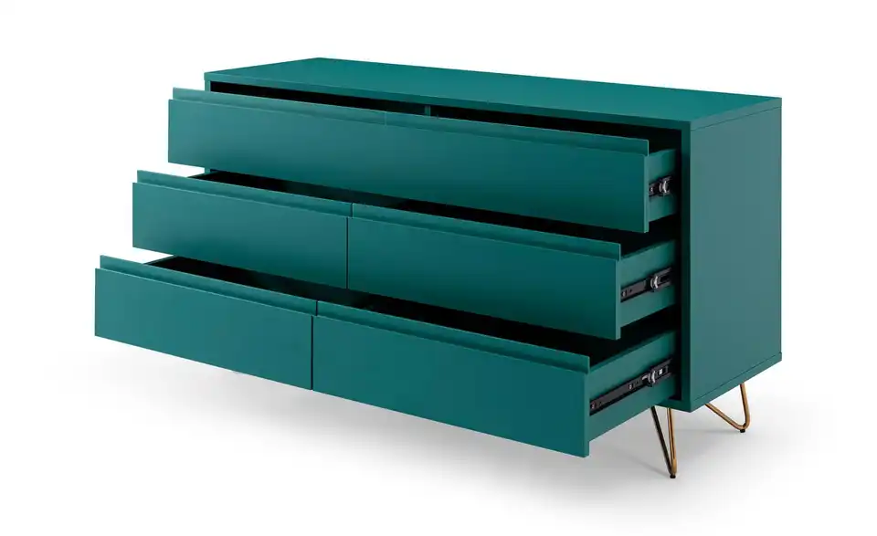 - Mehr zu Ausstattung / FunktionBeine aus Metall mit Messinglegierung, 6 Schubladen ausziehbar