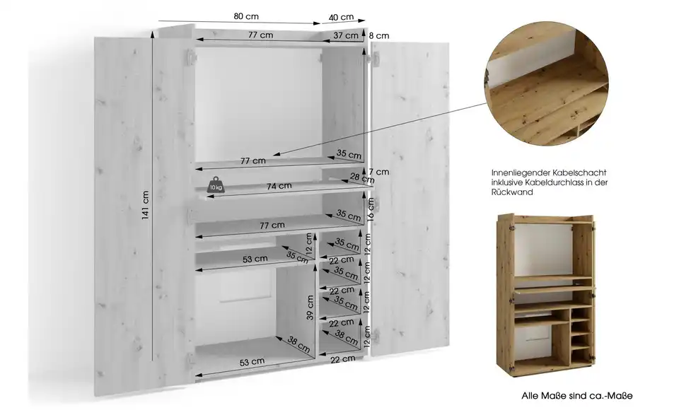 - max. Belastbarkeit je festem Einlegeboden bis ca.10 kg