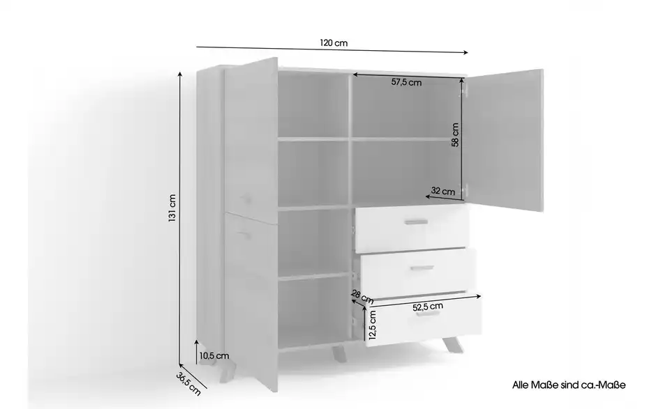 - Lieferumfang / mitgeliefertes Zubehör1x Highboard