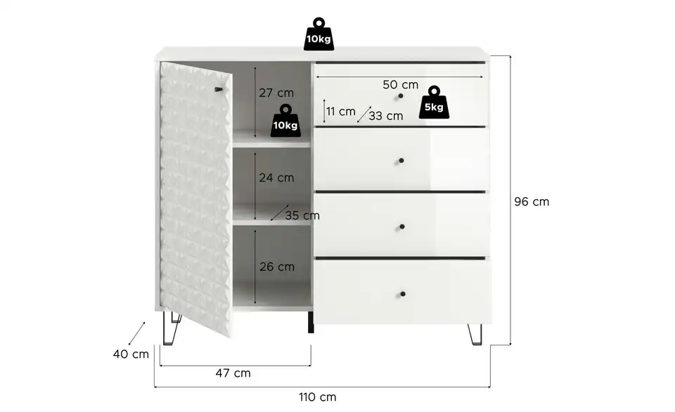 - max. Belastbarkeit je verstellbarem Einlegeboden bis ca.10 kg