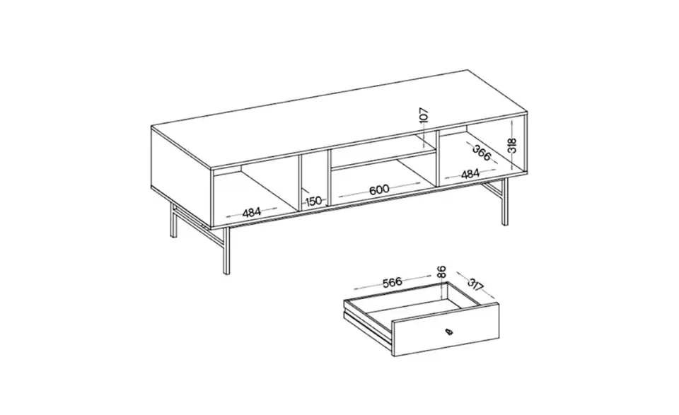 - Lieferumfang / mitgeliefertes Zubehör1 Lowboard ohne Inhalt und Dekoration