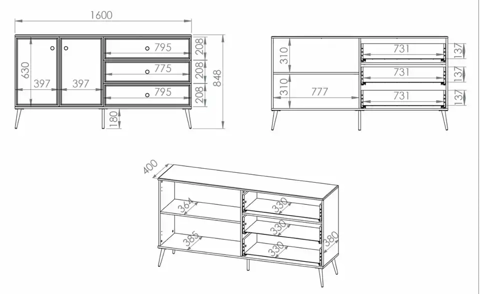 - Lieferumfang / mitgeliefertes Zubehör1 Sideboard ohne Inhalt und Dekoration