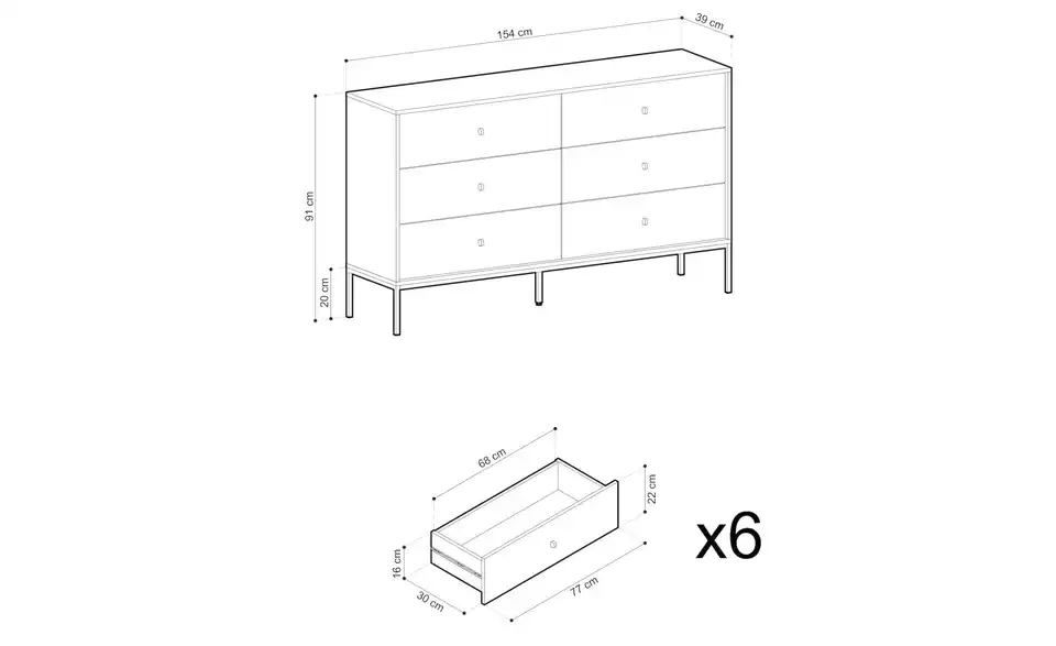 - Anzahl Schubkästen6 Stück