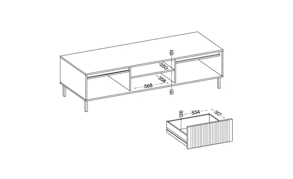 - Lieferumfang / mitgeliefertes Zubehör1 Lowboard ohne Inhalt und Dekoration