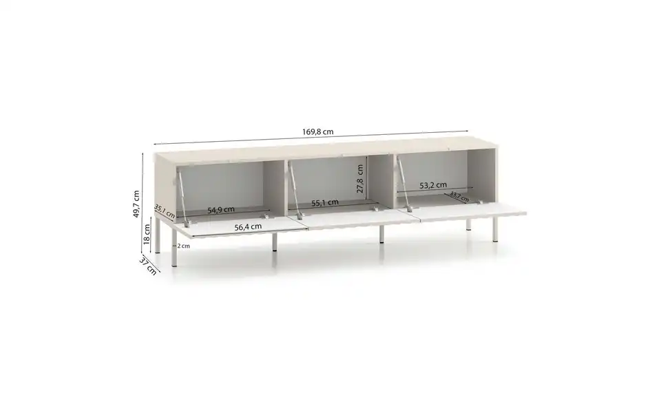 - Lieferumfang / mitgeliefertes Zubehör1 Lowboard ohne Inhalt und Dekoration