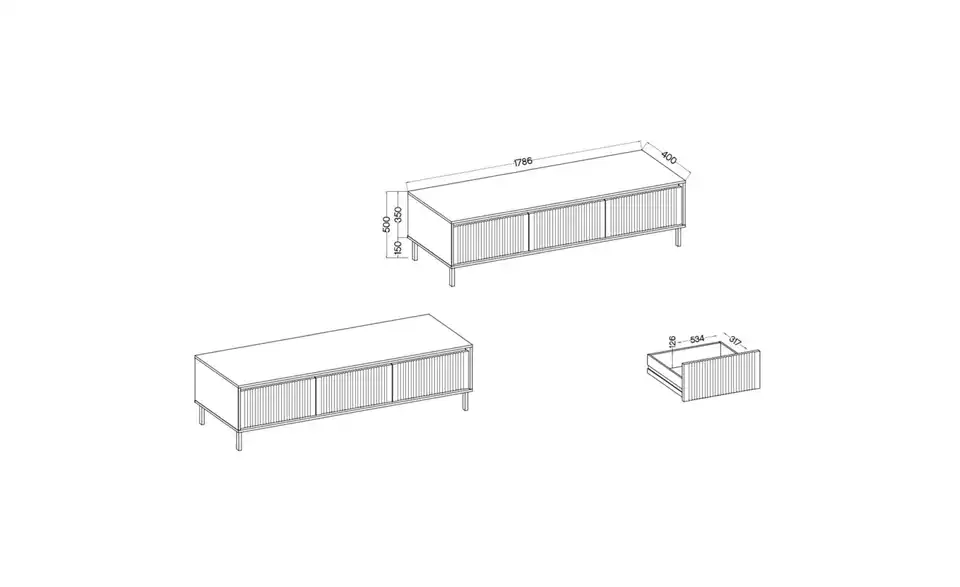 - Lieferumfang / mitgeliefertes Zubehör1 Lowboard ohne Inhalt und Dekoration
