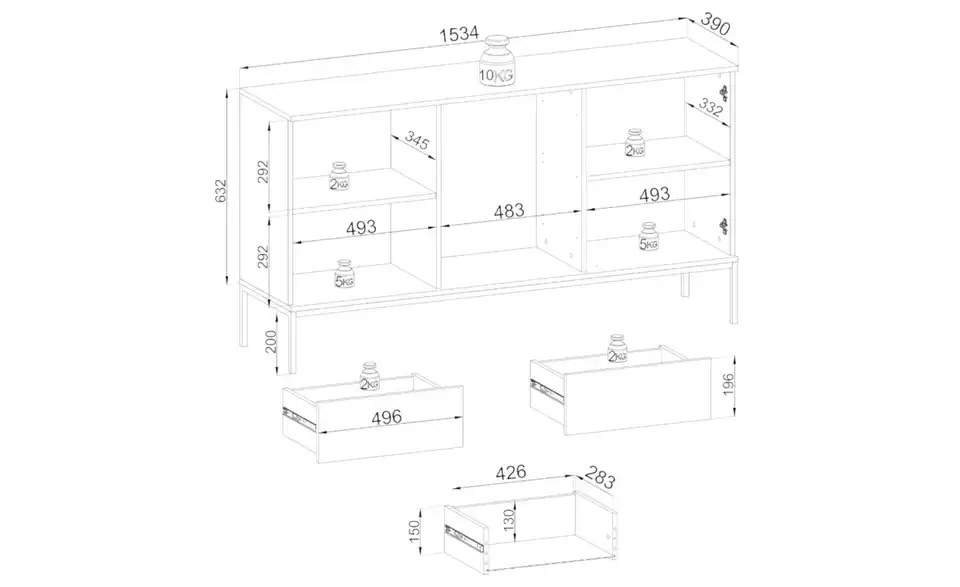 - Lieferumfang / mitgeliefertes Zubehör1 Sideboard ohne Inhalt und Dekoration