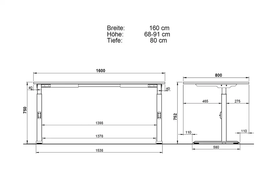 - Maße Tisch (LxB)160 x 80 cm