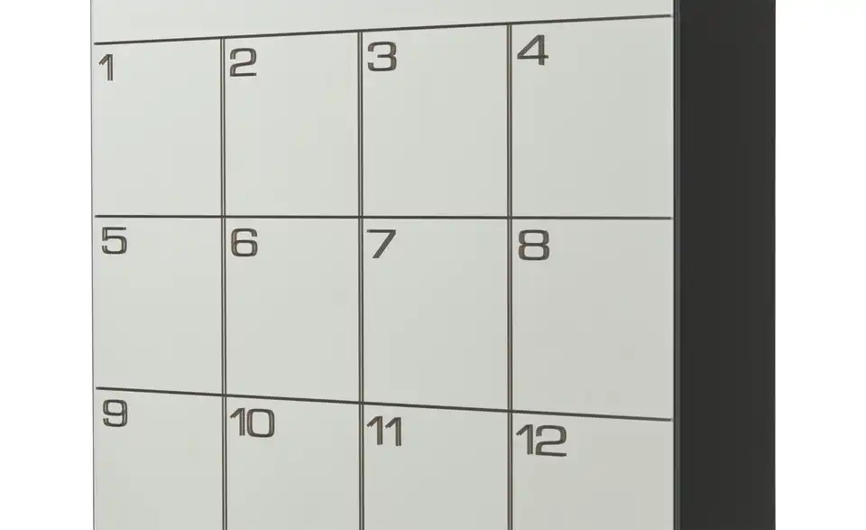 - Vorderseite mit großem Spiegel und Monatsplaner