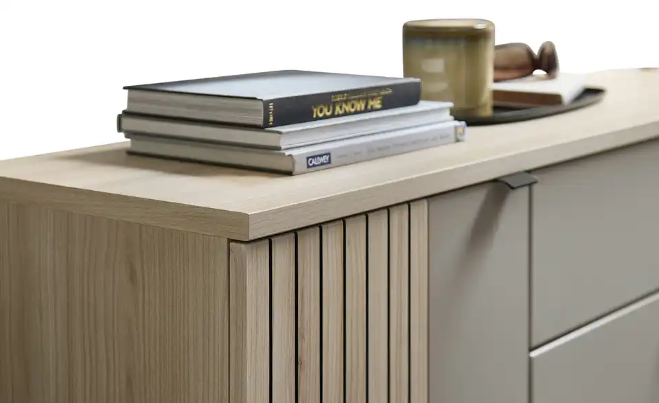 - Front in Basaltgrau mit Leistenoptik in Riva Eichendekor