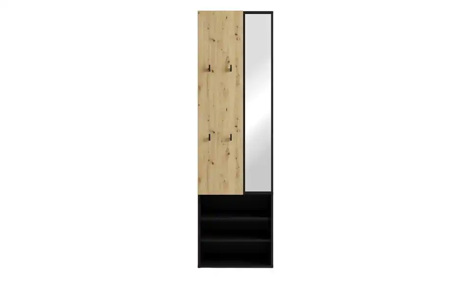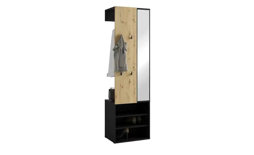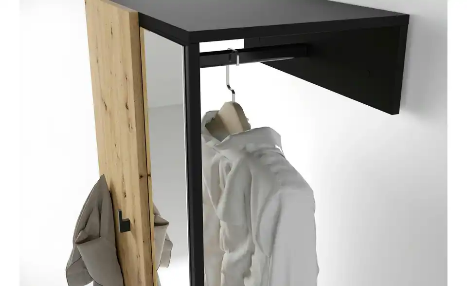 - Mehr zu Ausstattung / FunktionKleiderstange Metall schwarz, Haken Kunststoff schwarz, Spiegelglasstärke 3mm, Einlegeboden in 32mm-Abständen verstellbar, Fächer für max. 6 paar Schuhe geeignet