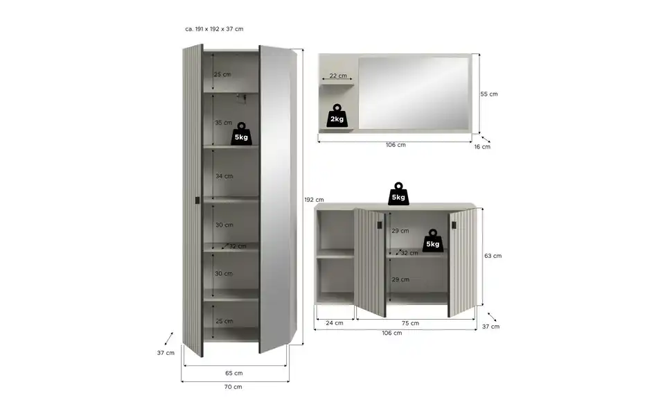 - max. Belastbarkeit je festem Einlegeboden bis ca.5 kg