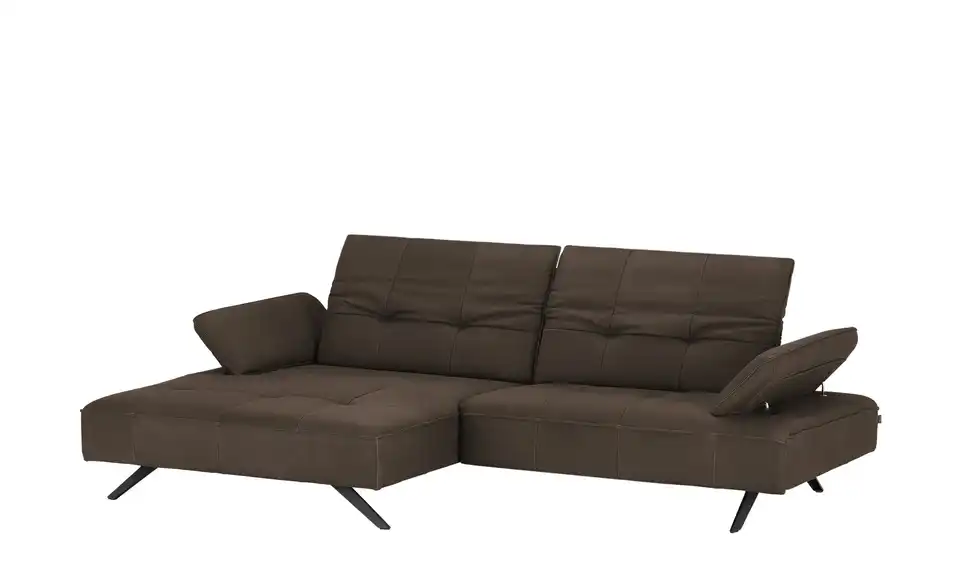 Dieses Ecksofa garantiert Ihnen zusätzliche Gemütlichkeit. Mit der Armteilverstellung, der Sitztiefenverstellung, der Kopfteilverstellung sowie der Sitztiefenverstellung lässt das Modell Square, was den Komfort angeht, keine Wünsche offen. Alle Qualitäten und Besonderheiten, die die Marke JOOP definieren, kombiniert das Sofa gekonnt. Es ist mit einem echt bezogenen Rücken ausgestattet, sodass es ohne Probleme mittig im Raum platziert werden kann, und hat eine komfortable Polsterung aus Kaltschaum für das maximale Wohlfühlerlebnis. Das Modell Square steht auf einem Gestell aus Metall. Das Sitzmöbel nimmt 282 x 78 x 165 cm ein und lädt mit der stattlichen Sitztiefe von 145 cm zum Relaxen ein. Dieses Sofa wird im Handumdrehen zu einer richtigen Oase der Behaglichkeit, welche Ihren vier Wänden auf stilvolle und praktische Art und Weise den letzten Schliff verleiht.Lieferung & Versand