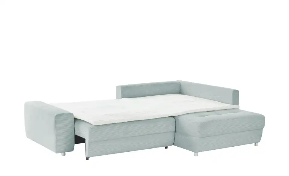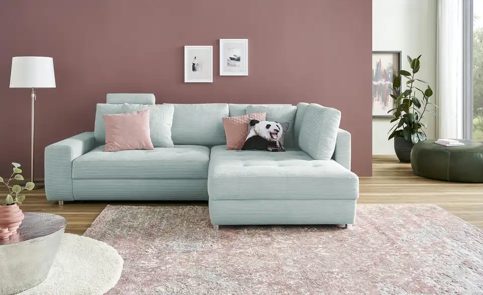 Die allerbesten Voraussetzungen zum gemütlichen Entspannen und Sitzen bietet dieses Ecksofa. In der Couch werden alle Qualitäten und Highlights, die die Marke bobb ausmachen, zusammengeführt. Das Sofa verfügt über eine Boxspringfederung sowie eine bequeme Polsterung aus Schaumstoff für noch mehr Komfort und ist frei im Raum platzierbar. Bei dem Material des Gestelles handelt es sich um Kunststoff. Dank eines integrierten Bettkastens dient die Couch als Stauraummöbel. Um einen Topper, Zierkissen sowie Rückenkissen brauchen Sie sich keine Gedanken zu machen, denn diese sind schon im Lieferumfang inbegriffen. Das Sitzmöbel nimmt insgesamt 265 x 84 x 209 cm ein, lädt mit der stattlichen Sitztiefe von 81 cm zum Relaxen ein und weist eine maximale Belastbarkeit von 570 kg auf. Mit diesem Sofa gestalten Sie Ihr Zuhause behaglich.Lieferung & Versand