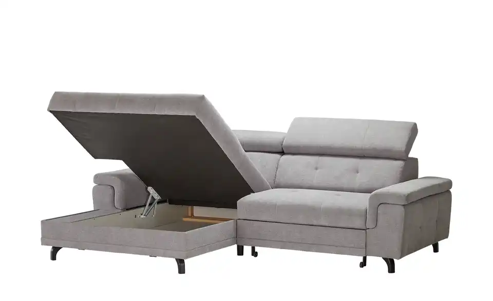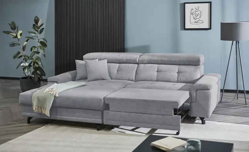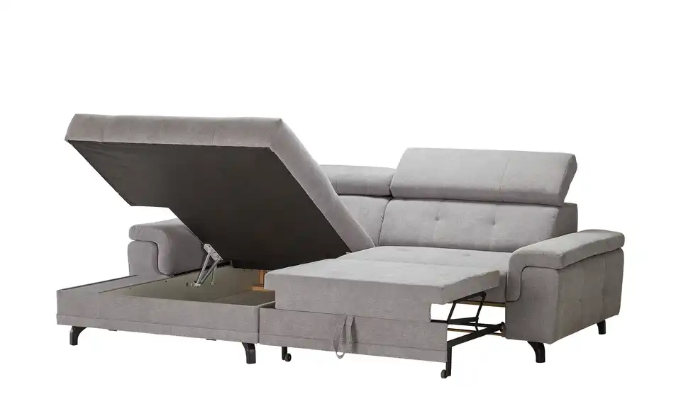 Dieses praktische Schlafsofa passt in nahezu jedes Wohn- oder Gästezimmer. Das zurückhaltende Design macht das Sofa nämlich absolut kombinationsfreudig und zeitlos. Machen Sie es sich bequem und klappen Sie die beiden Kopfstützen bei Bedarf ganz einfach hoch. Auf der Ottomane können Sie sich derweil bei Filmeabenden besonders bequem machen. Streit um die Ottomane? Nicht mit diesem Sofa. Nutzen Sie einfach die integrierte Schlaffunktion und erweitern Sie die Sitz- und Liegefläche. So entsteht ein praktischer Schlafplatz oder aber eine zweite Ottomane. Gut zu wissen: Unter der Ottomane befindet sich ein geräumiger Bettkasten für Schlafzeug und Mehr.Lieferung & Versand