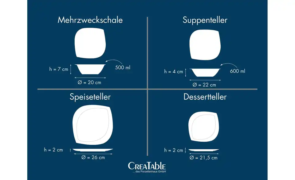 Hochwertiges Geschirr aus Porzellan sowie Gläser und Besteck in schicken Designs von klassisch bis modern – dafür ist die deutsche Marke CreaTable bekannt. Der Markenname setzt sich auf den englischen Begriffen für „kreativ“ und „Tisch“ zusammen und spiegelt damit die Vision des Porzellanhauses wider: dem Mix aus Kreativität und Tischkultur.