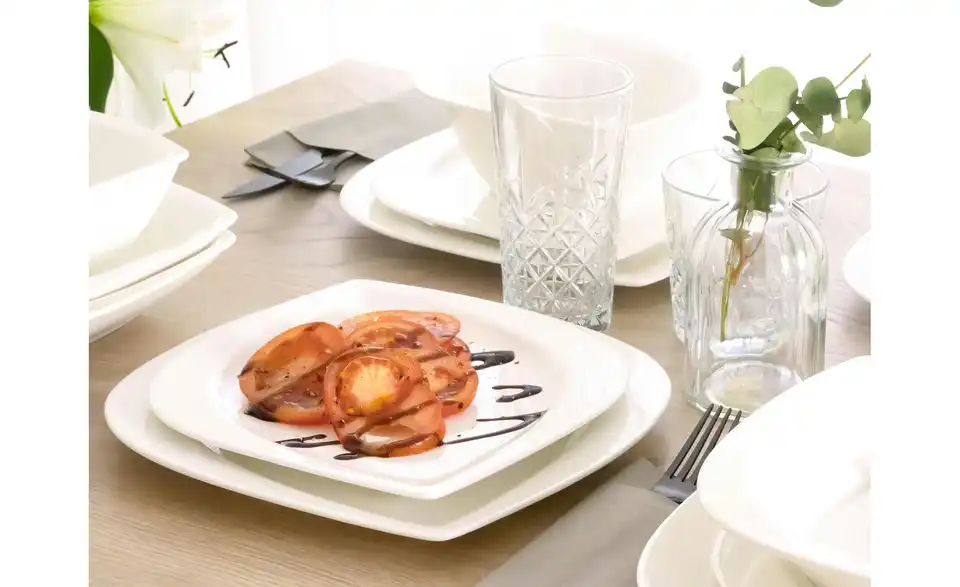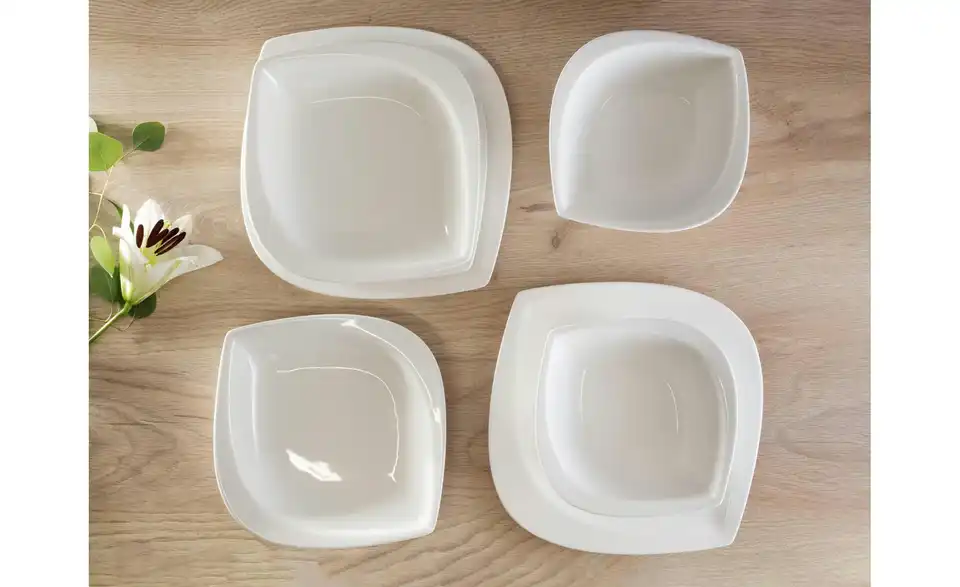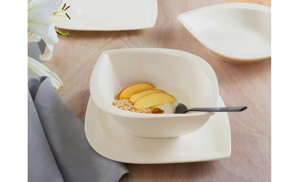 - Lieferumfang / mitgeliefertes Zubehör4 Speiseteller 26,5 cm 4 Dessertteller 22 cm 4 Suppenteller 23 cm 4 Mehrzweckschalen 18 cm