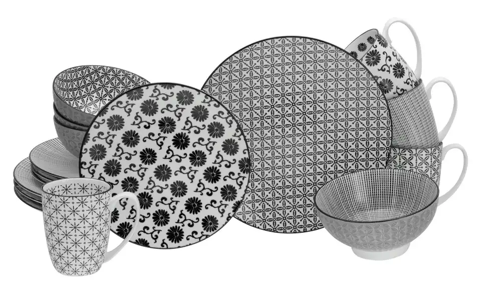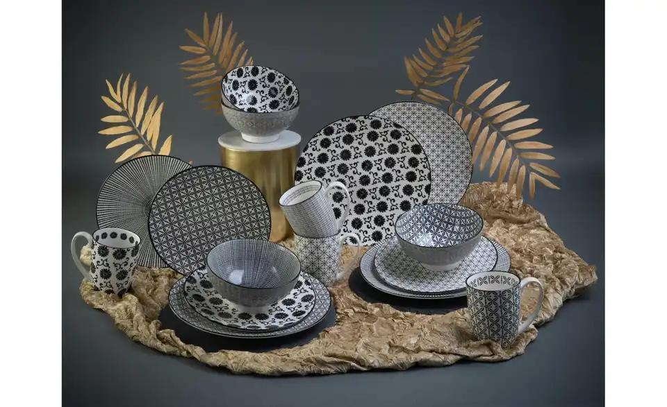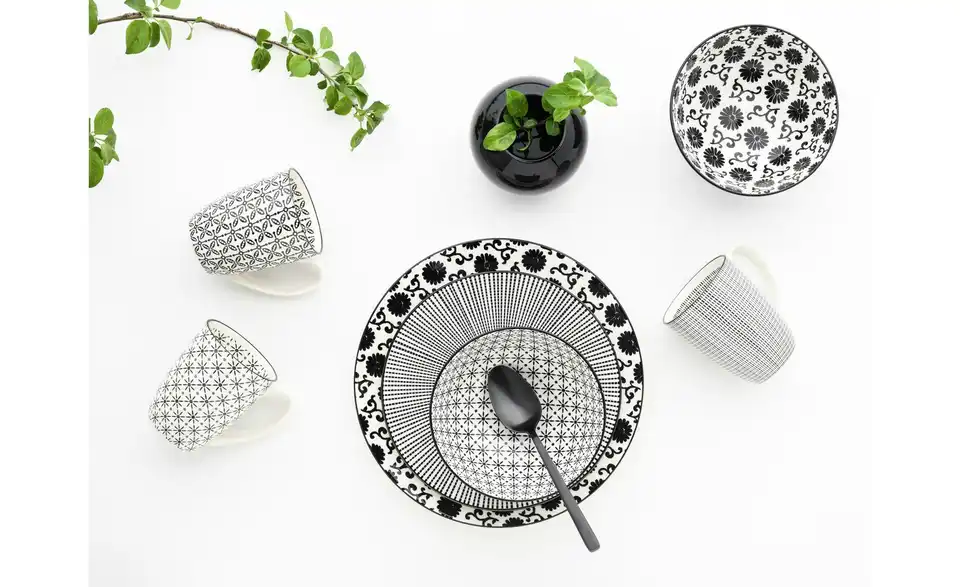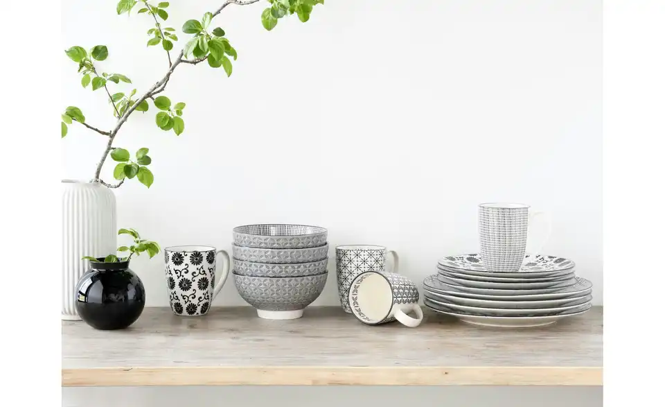 - Lieferumfang / mitgeliefertes Zubehör4 Speiseteller (Ø 27 cm), 4 Dessertteller (Ø 20 cm), 4 Mehrzweckschalen (Ø 16,5 cm) und 4 Kaffeebecher (30 cl)