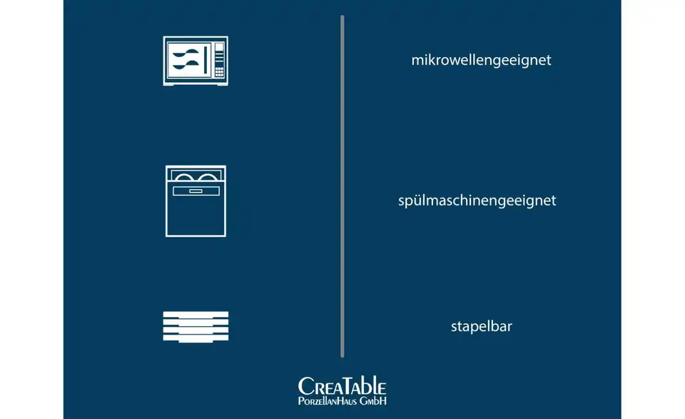 Hochwertiges Geschirr aus Porzellan sowie Gläser und Besteck in schicken Designs von klassisch bis modern – dafür ist die deutsche Marke CreaTable bekannt. Der Markenname setzt sich auf den englischen Begriffen für „kreativ“ und „Tisch“ zusammen und spiegelt damit die Vision des Porzellanhauses wider: dem Mix aus Kreativität und Tischkultur.