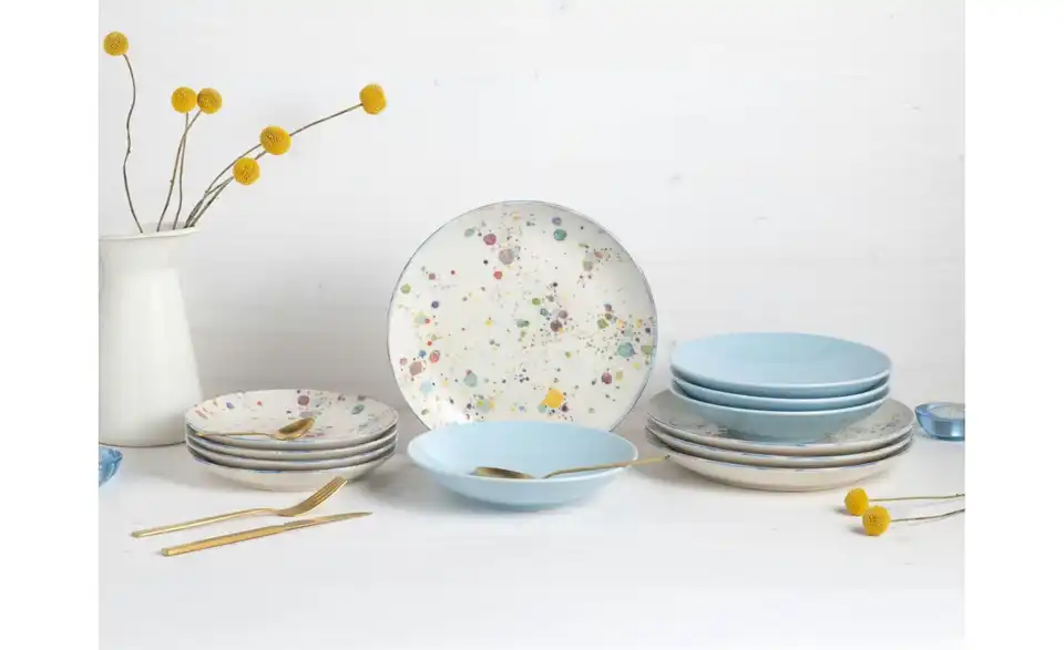 - Lieferumfang / mitgeliefertes Zubehör4 Speiseteller 27 cm 4 Suppenteller 22 cm 4 Dessertteller 21 cm