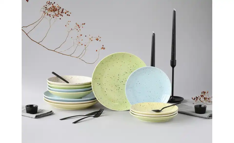 - Lieferumfang / mitgeliefertes Zubehör4 Speiseteller 27 cm 4 Suppenteller 22 cm 4 Dessertteller 21 cm