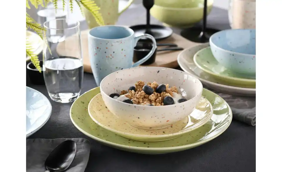 - Lieferumfang / mitgeliefertes Zubehör4 Speiseteller 27 cm 4 Dessertteller 21 cm 4 Mehrzweckschalen 16,5 cm 4 Kaffeebecher 30 cl