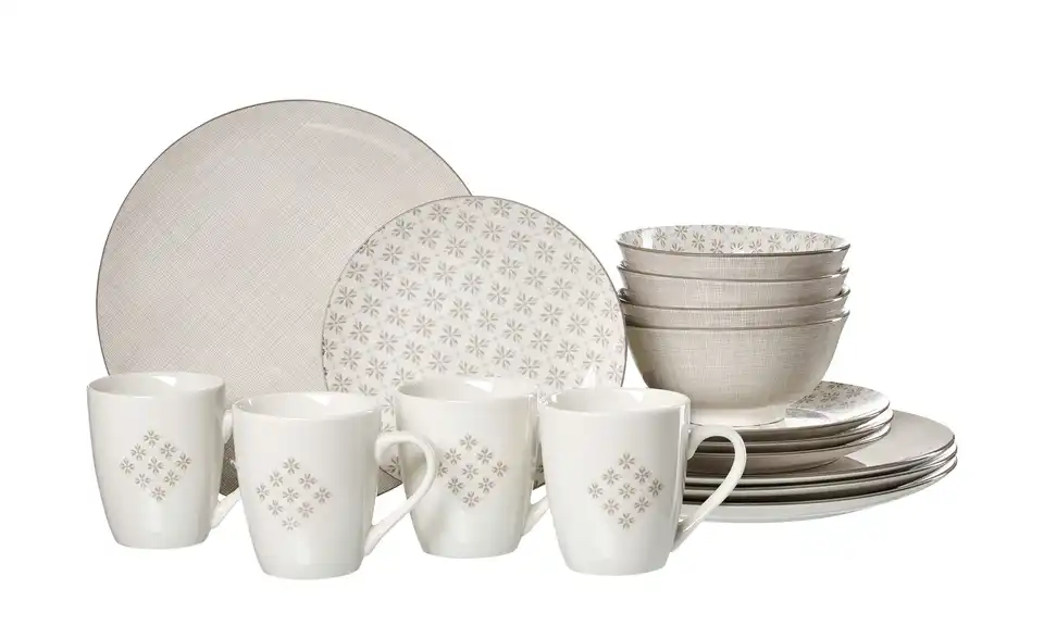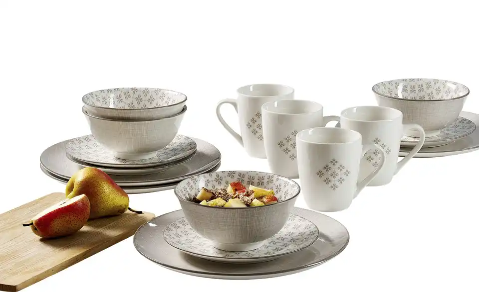 - Lieferumfang / mitgeliefertes Zubehör4 Kaffeebecher 350ml4 Speiseteller 26,5cm4 Schale 15,5cm4 Desserteller 20,5cm