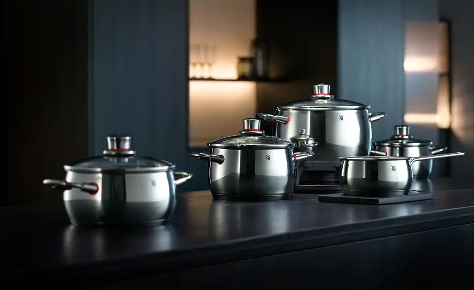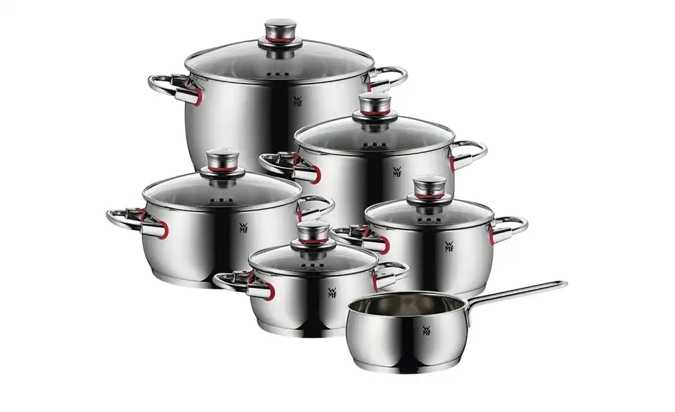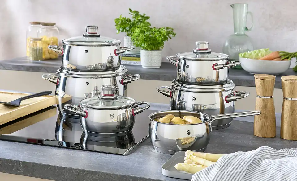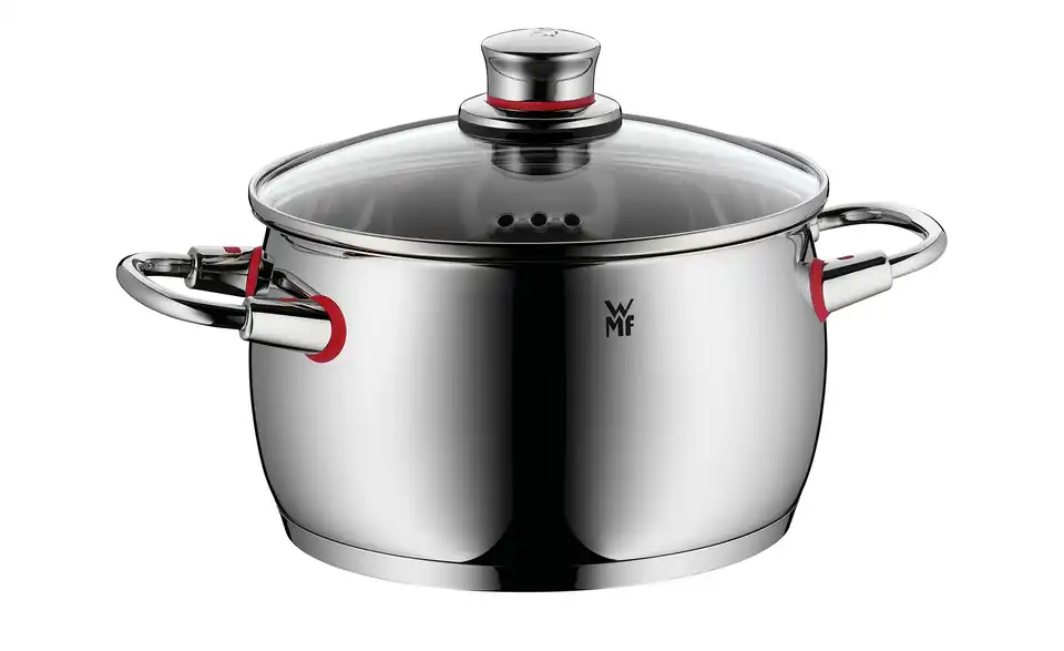 Das Quality One Topf-Vorteils-Set* von WMF beeindruckt dank robuster, langlebiger und gleichzeitig pflegeleichter Materialien mit perfekter Funktion im täglichen Küchenalltag. Dazu sorgt die patentierte Cool+ Technologie für hohen Komfort beim Kochen, indem sie die Wärmeübertragung vom Topf auf die Griffe deutlich reduziert** und diese sich deutlich geringer erwärmen als andere. Mit Deckeln aus hochwertigem Güteglas, die zudem mit einer Dampföffnung ausgestattet sind sowie dem TransTherm®-Allherdboden zum Einsatz auf jedem Herd, inklusive Induktion, erfüllen die Quality One Kochtöpfe mühelos weitere, wichtige Anforderungen an modernes Kochgeschirr. Gefertigt aus strapazierfähigem, speisesäurefestem und geschmacksneutralem Cromargan®: Edelstahl Rostfrei 18/10, dürfen die Töpfe dieses Sets selbstverständlich nebst Glasdeckeln zur bequemen Reinigung in die Spülmaschine.Lieferung & Versand