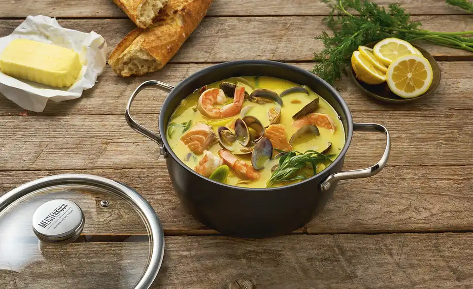 Um auf höchstem Niveau zu kochen, braucht es drei Dinge: ausgewählte Zutaten, viel Liebe und bestes Koch-Equipment. MEISTERKOCH ist Ihr Partner für hochwertige Töpfe, Pfannen und Küchenzubehör in Chefkoch-Qualität, mit dem schon das Zubereiten der Speisen zum Genuss wird. Mit MEISTERKOCH kochen Sie wie die Profis, überzeugen Sie sich selbst!