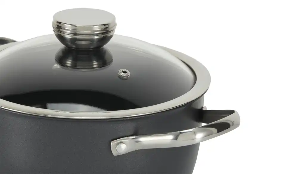 - Glasdeckel mit Edelstahlgriff und Dampfauslass