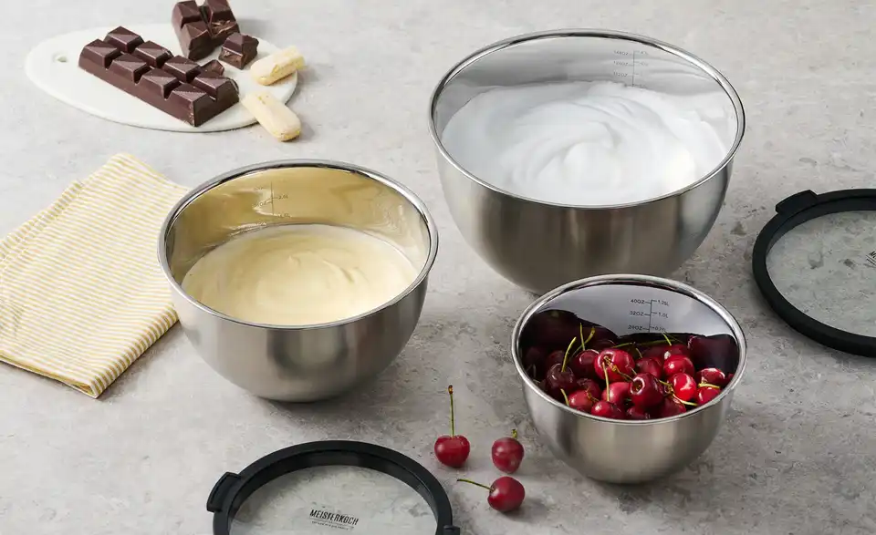- Lieferumfang / mitgeliefertes Zubehör1x Schüssel Ø 24cm mit Deckel1x Schüssel Ø 20cm mit Deckel1x Schüssel Ø 16cm mit Deckel
