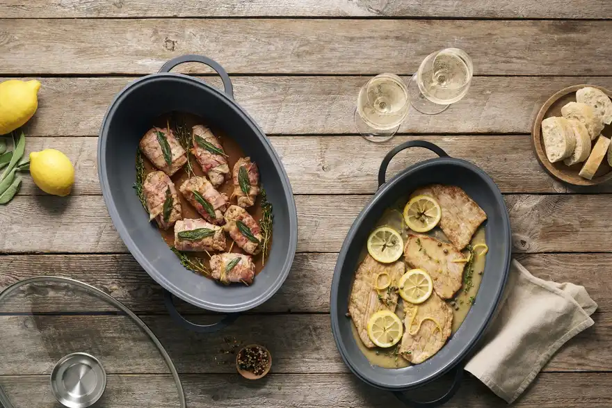 - Inklusive Pfanne und Deckel mit Aromaknopf für langsames Eintropfen lassen von Flüssigkeiten, wie z.B. Rotwein