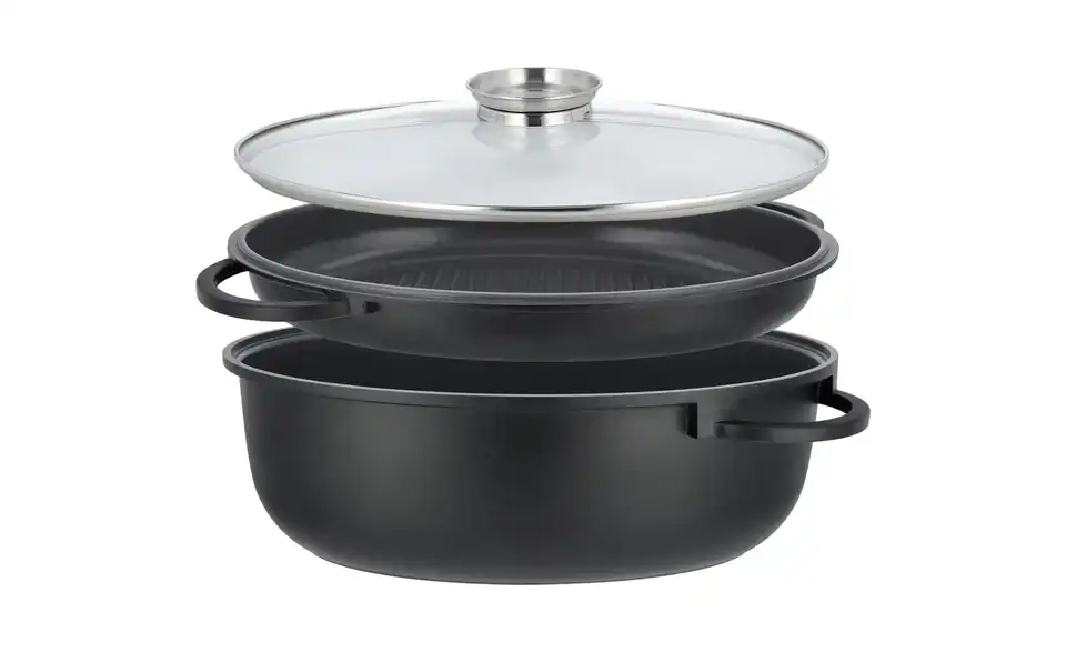 - Lieferumfang / mitgeliefertes Zubehör3-teilig inklusive Pfanne, Deckel und Grillpfanneneinsatz