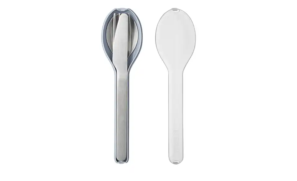 - Lieferumfang / mitgeliefertes ZubehörGabel, Löffel und Messer aus Edelstahlwiederverwendbare Hülle aus Kunststoff