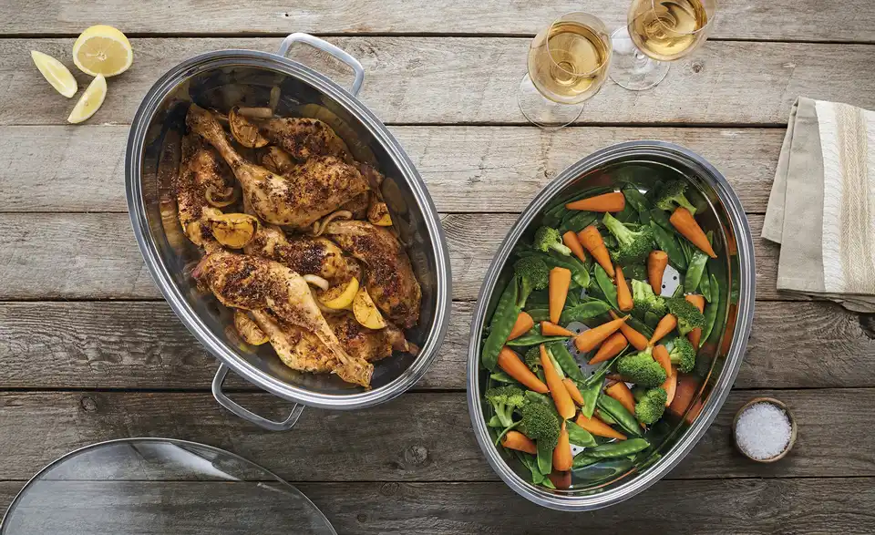 - Lieferumfang / mitgeliefertes ZubehörEdelstahl- BräterGlasdeckel mit KaltgriffDämpfeinsatzGittereinsatz